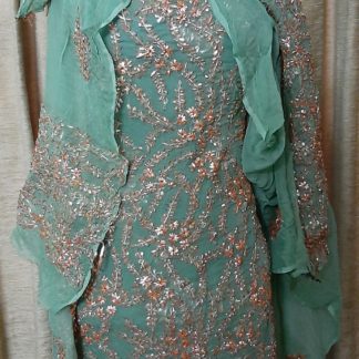 2 peice turquoise wedding dress with heavy work